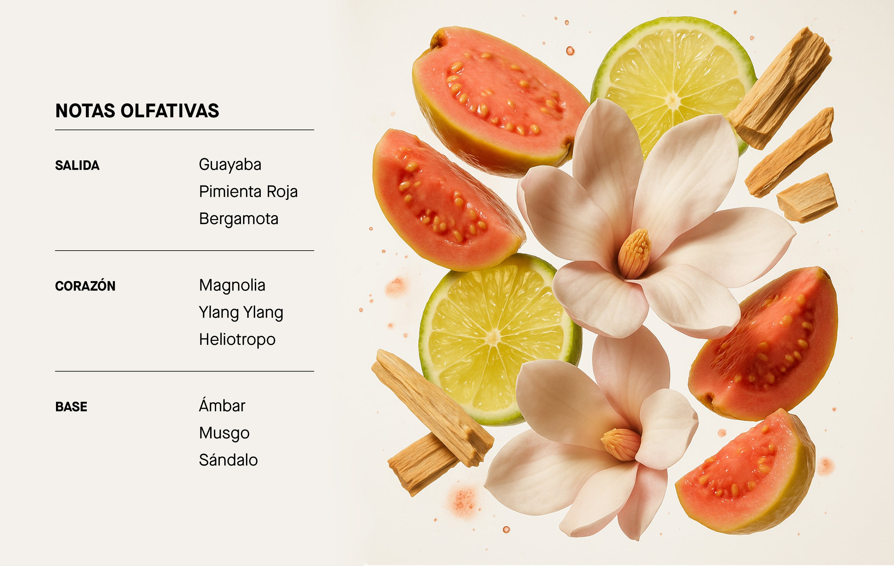 Salida: Guayaba, Pimienta Rosada, Bergamota
