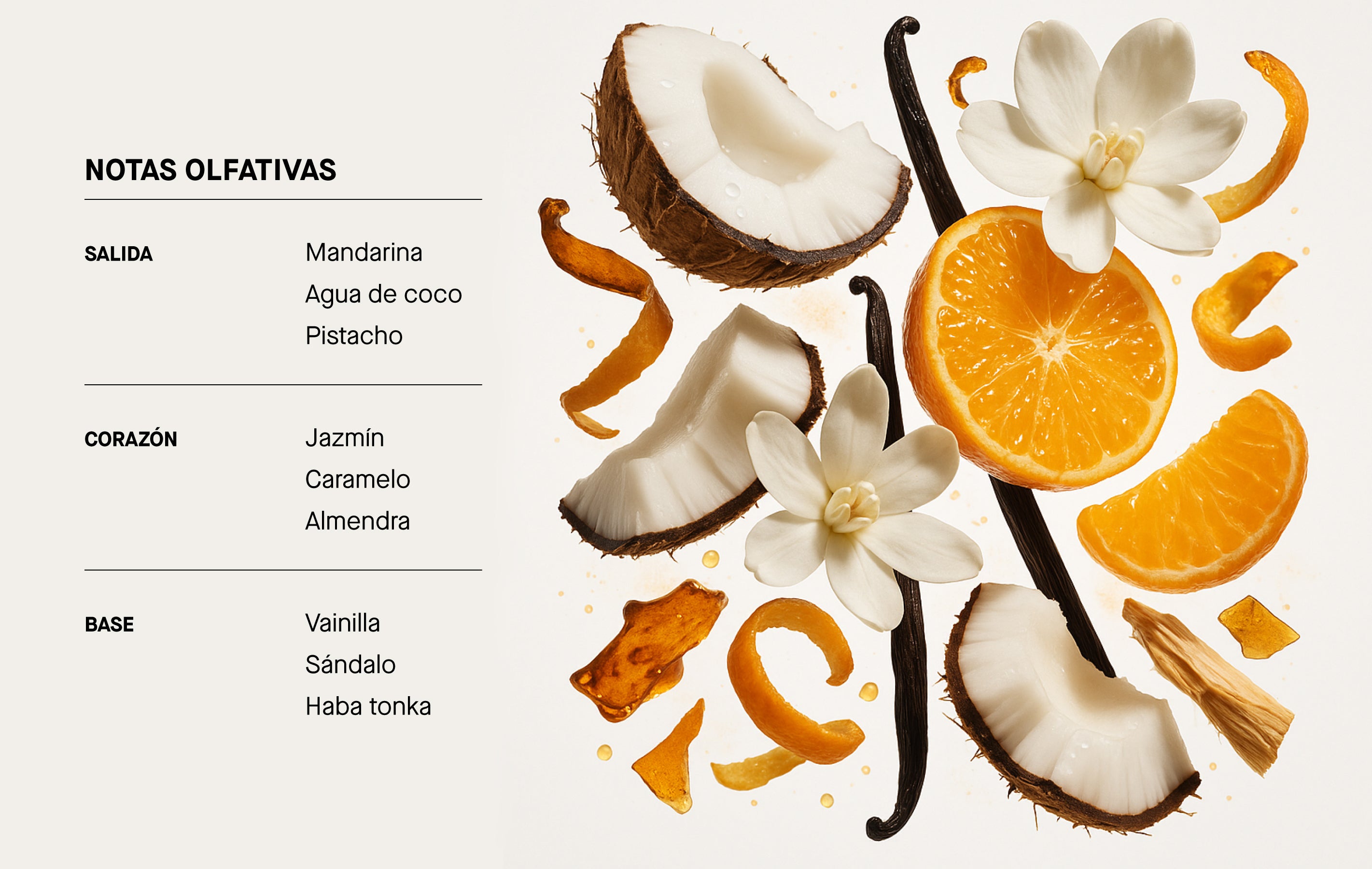Fondo: Vainilla, Sándalo, Tonka Bean